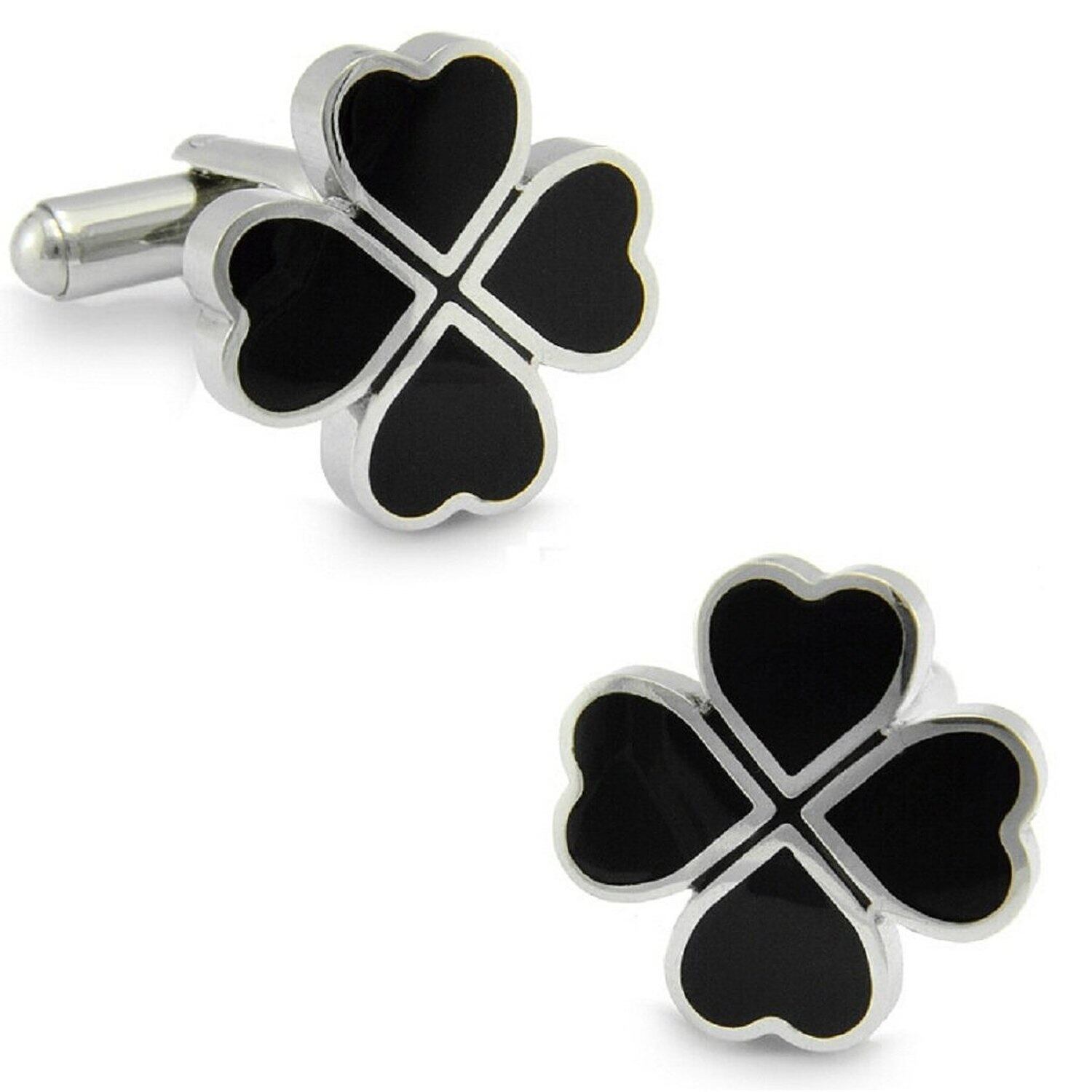 シンプル 幸運 クローバー カフス リンクス ボタン おしゃれ メンズ ブラック