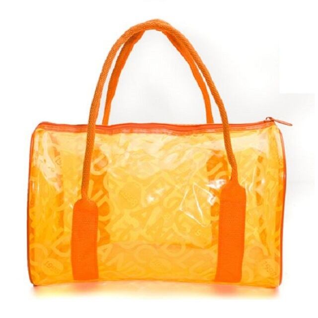 人気 レディース ビーチ ビニール 透明 バッグ 防水 夏 に 海 プール ( オレンジ )