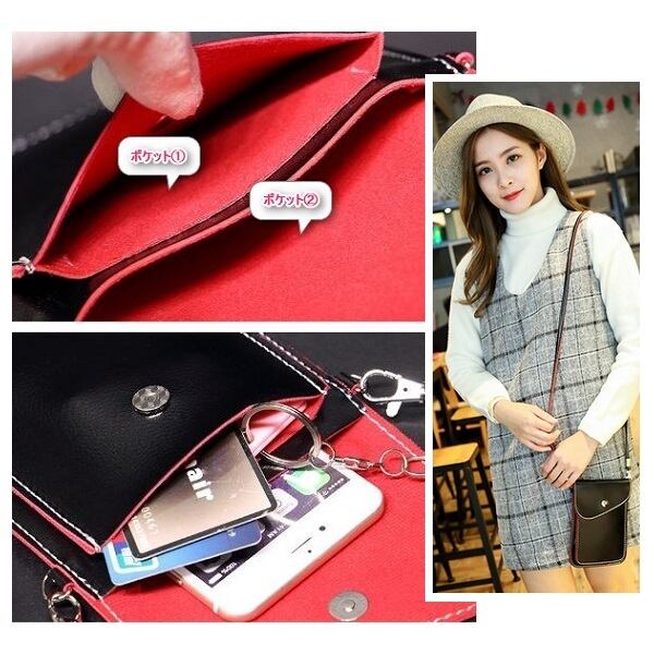 ショルダー バッグ かわいい iPhone スマホ ポーチ レディース PU 革 レザー ( ブラック )