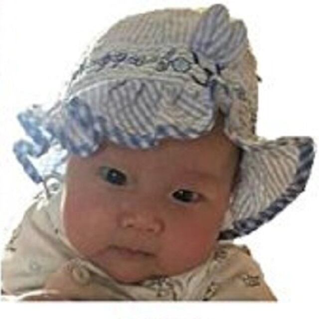 かわいらしいフリフリのツバで、紫外線から赤ちゃんをしっかり守ります!