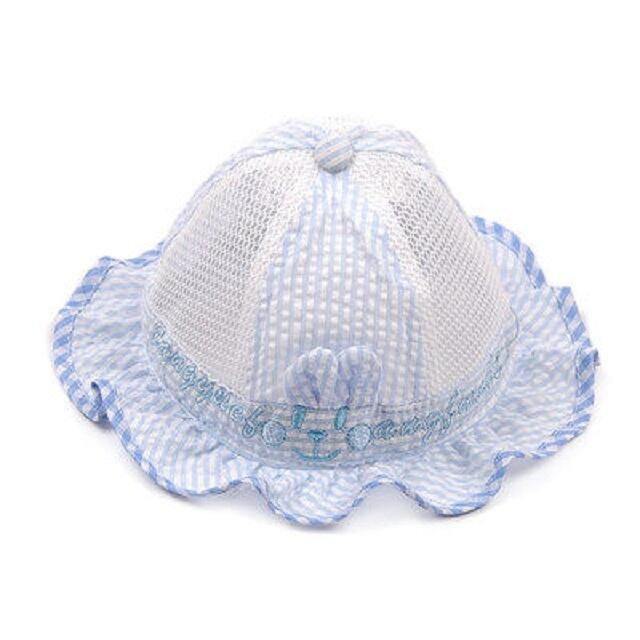 赤ちゃん 帽子 ボーダー 女の子 男の子 夏 紫外線 UV 防止 日除け お出かけ用 ベビー ハット ( メッシュタイプ ブルー )