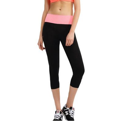 伸縮性抜群 ストレッチ スポーツ トレーニング 七分丈 レギンス 脂肪燃焼 レディース パンツ ジム ヨガ ランニング ( ブラック×オレンジ )