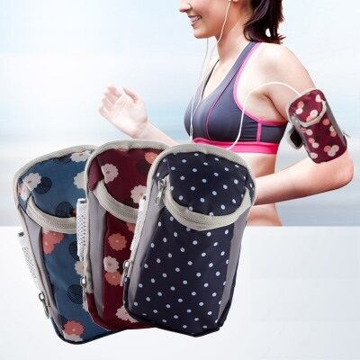 ランニング 防水 アーム ポーチ 全3色 iPhone Android などの スマホ 収納 サイクリング スポーツ ( ドット柄 ネイビー )