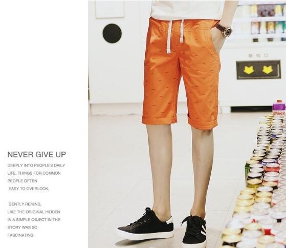 メンズ カジュアル ハーフ パンツ 5分丈 ショーツ ウエストゴム 男性 ビーチ サーフ 通気 ( オレンジ )