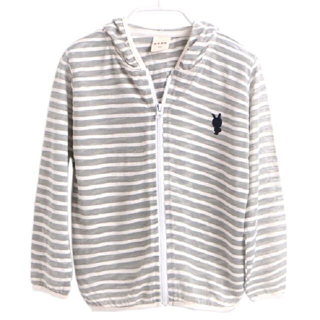 かわいい キッズ用 ボーダー 薄手 カーディガン ラッシュガード 長袖 日焼け 紫外線 防止 子供服 ( グレー )