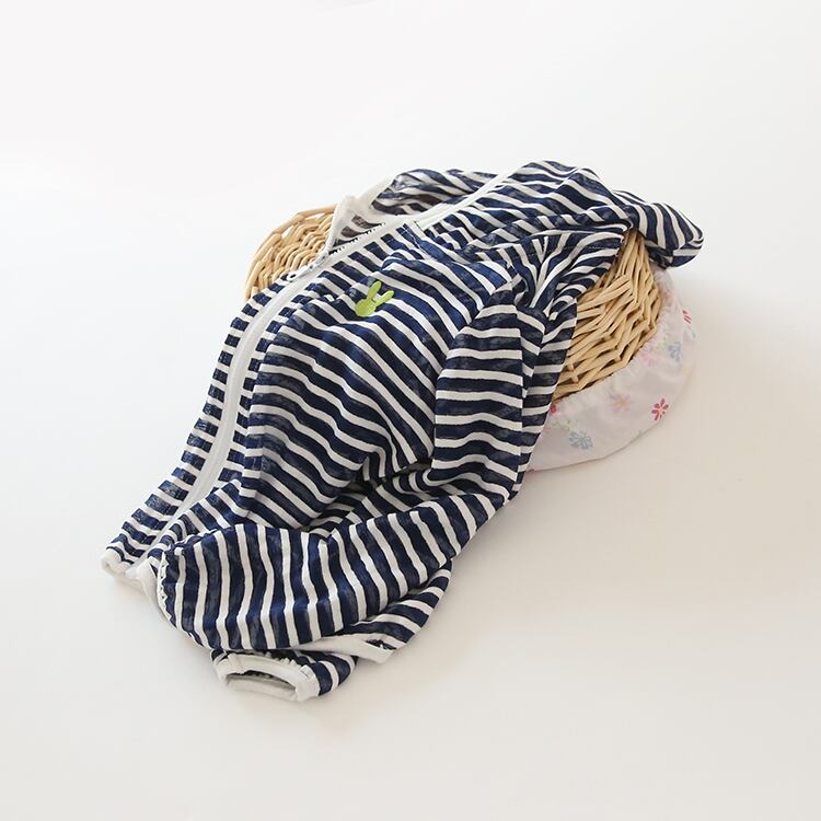 かわいい キッズ用 ボーダー 薄手 カーディガン ラッシュガード 長袖 日焼け 紫外線 防止 子供服 ( ネイビー )