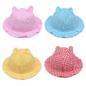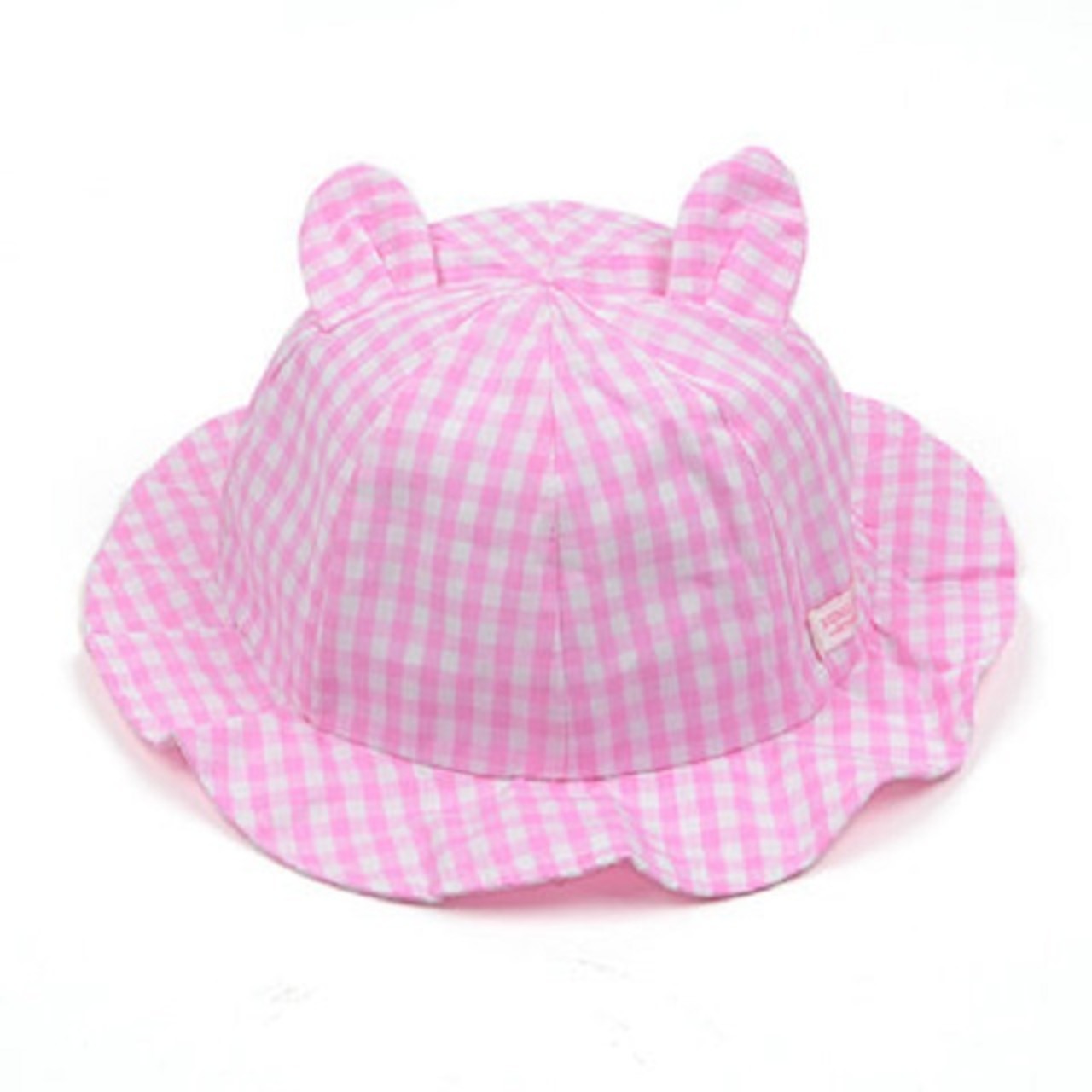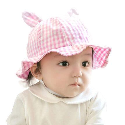 かわいい 耳付き 赤ちゃん 帽子 チェック柄 女の子 男の子 夏 紫外線 UV 防止 日除け ベビー ハット ( ピンク )