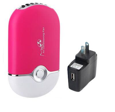 モバイル USB 充電式 ミニ クーラー 扇風機 ファン 首下げ ストラップ付 簡単 ワンプッシュ ( ピンク )