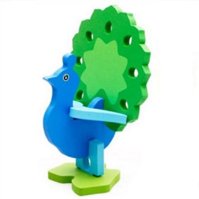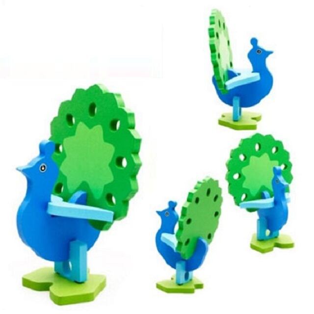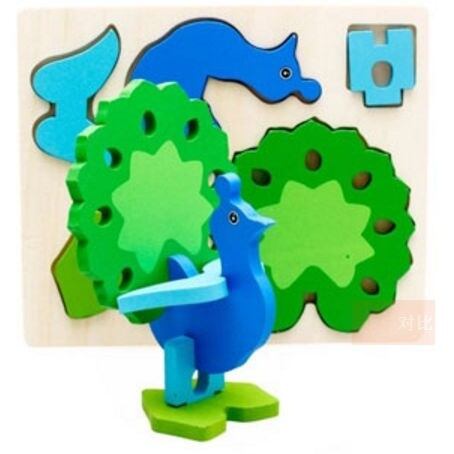3D 立体 動物 模型 おもちゃ 木製 知育玩具 インテリア パズル 幼児 ( クジャク )
