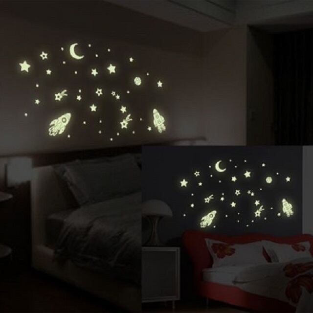 寝るのが楽しみ♪ 蓄光 光る シール 壁 ステッカー 寝室 に 夜光 ウォールステッカー ( 宇宙の旅 )