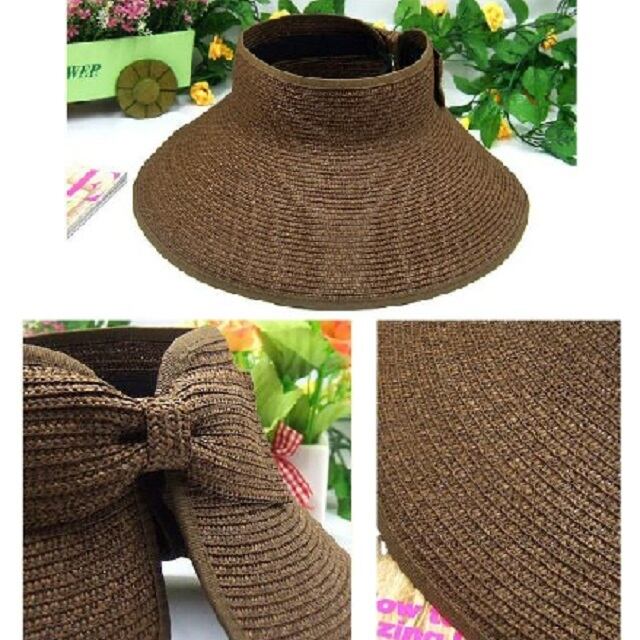 折りたたみ つば広 ストロー ハット レディース 夏 UV 紫外線 防止 麦わら 帽子 ( ブラウン )