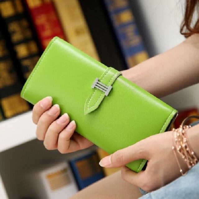 レディース 長財布 PU レザー調 ベルト付き おしゃれ ファスナー ロング ウォレット ( グリーン )