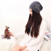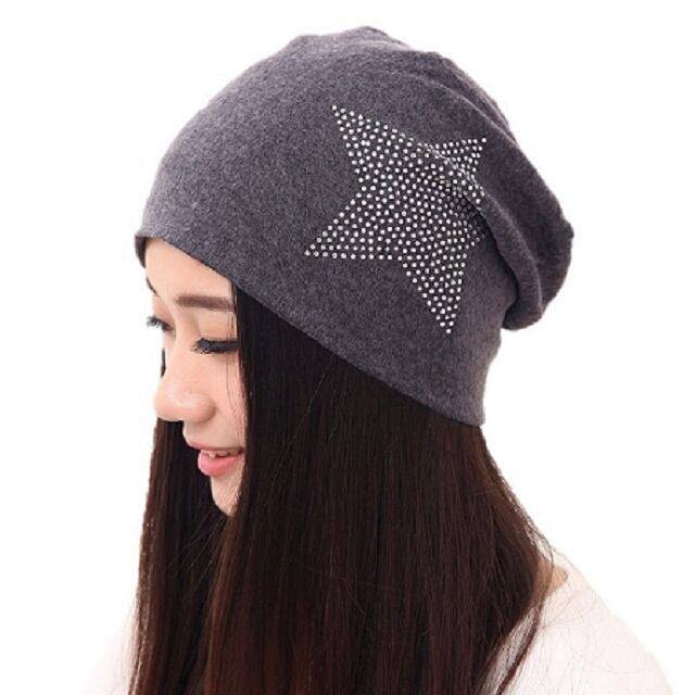 スター柄 キャップ 帽子 ラインストーン コットン 素材 男女兼用 ニット帽 ( ダークグレー )