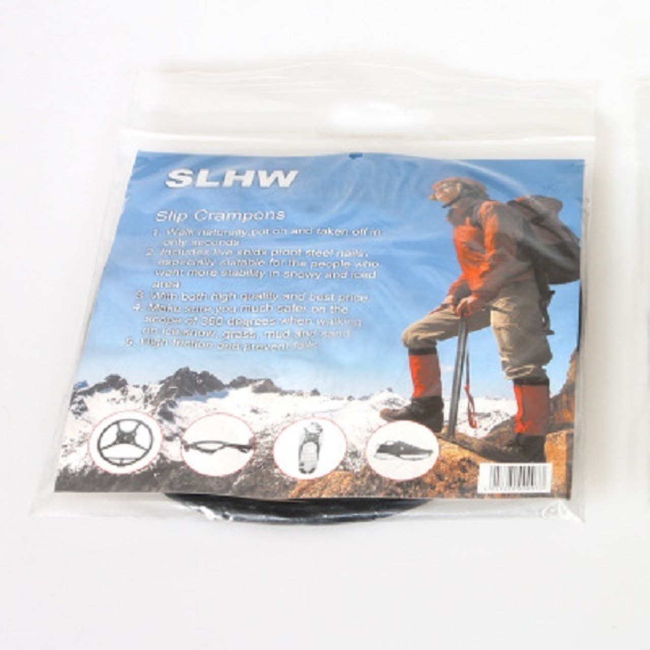 5本の爪が路面をガッツリつかむ!ゴムが伸びるのでほとんどの靴にフィット!サイズを気にせずに使用でき、外れる心配もありません。軽くて薄くて小さいので持ち運びにも便利です。(女性用のヒール等一部、装着に不向きな靴もあります。)