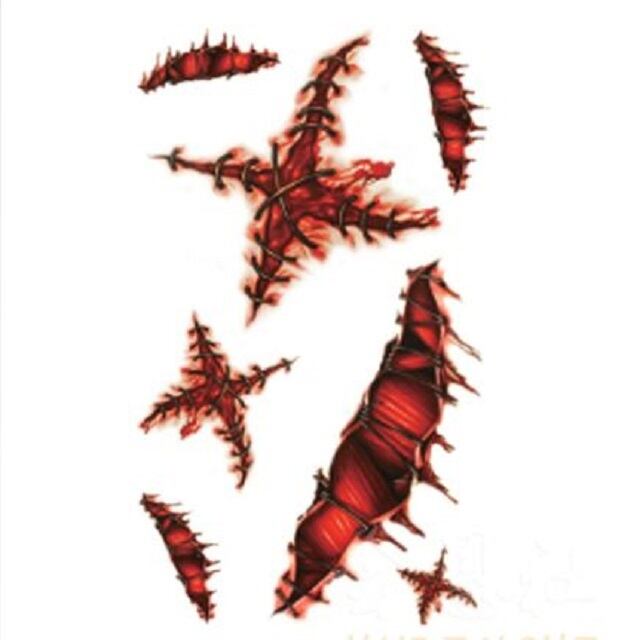 痛々しい様を再現!特殊メイクの効果があるホラータトゥーシールです!!