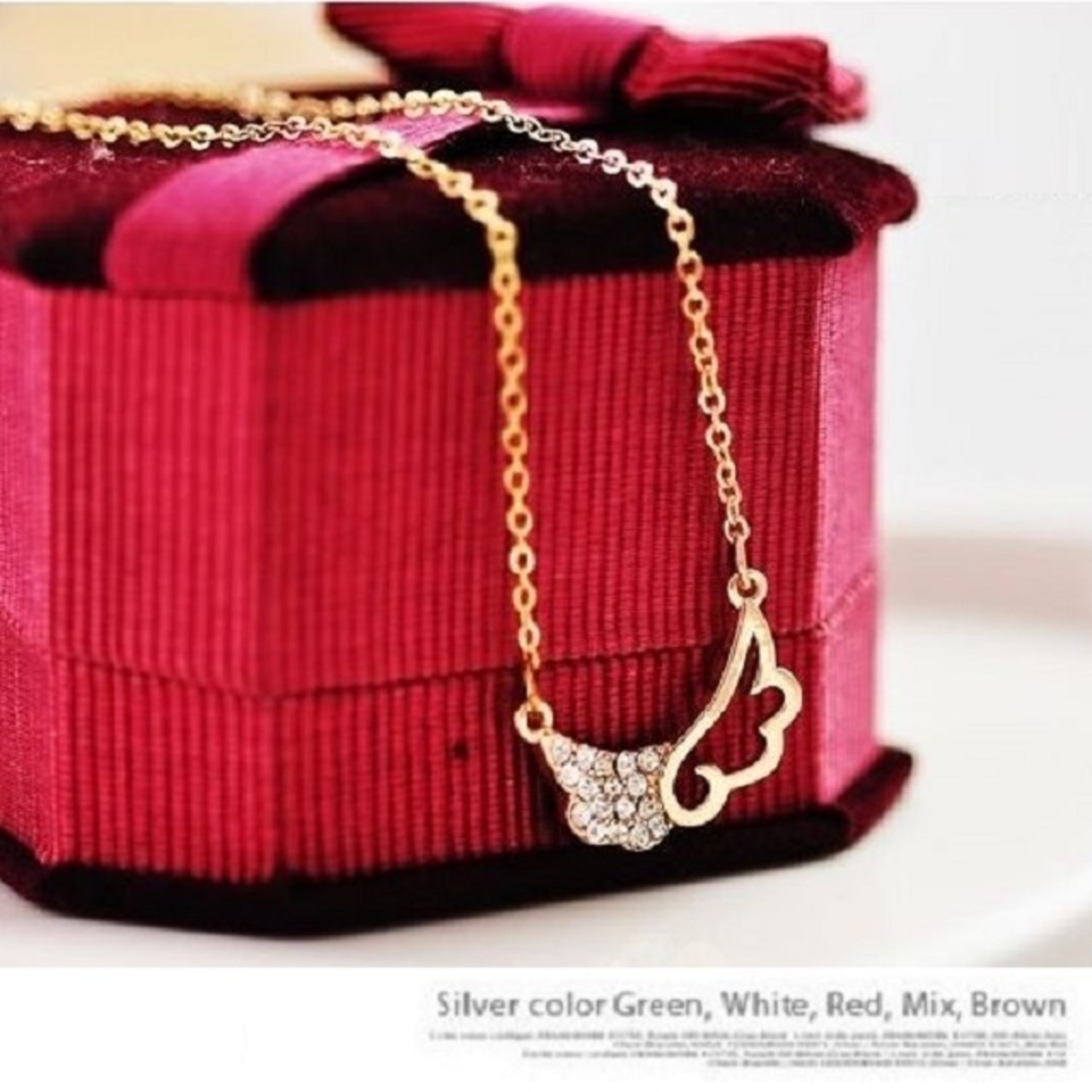 天使の羽 モチーフ ネックレス かわいい ラインストーン レディース アクセサリー