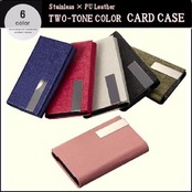 異素材を組み合わせたシンプルでスタイリッシュなカードケースです。レザー調素材とステンレスのコンビネーションが個性的。高級感のある名刺入れです。性別を問わないシンプルさも魅力。