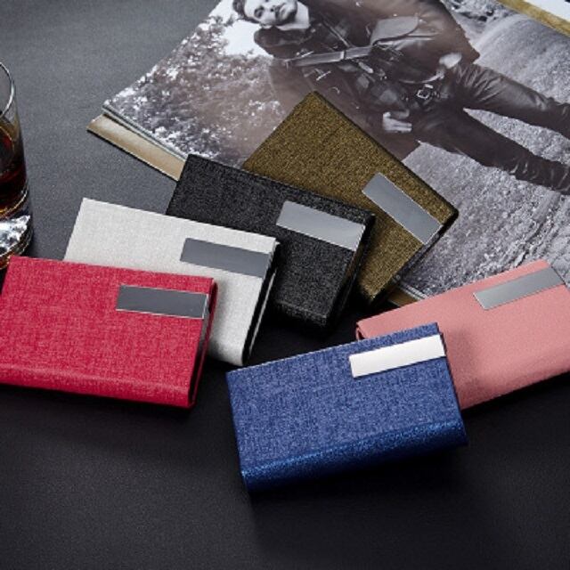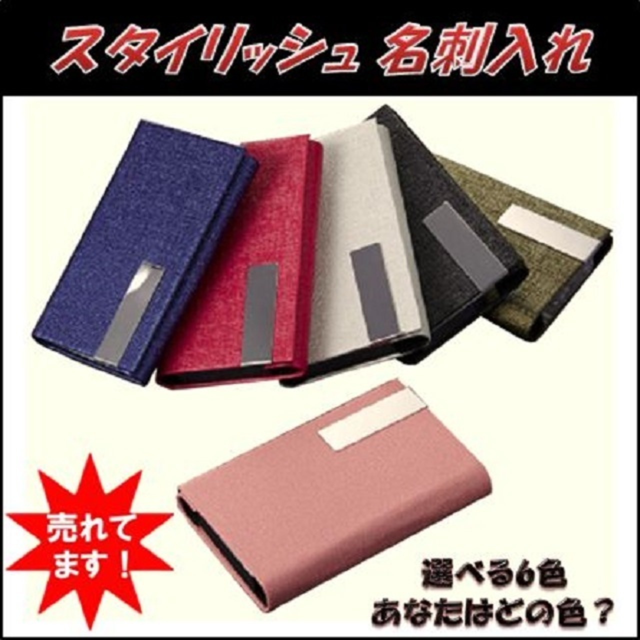 スタイリッシュ 名刺入れ 選べる6色 表面 PU レザー ステンレス おしゃれ カード ホルダー ( ピンク )