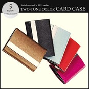 ツートンカラー 名刺入れ 選べる5色 表面 PU レザー ステンレス おしゃれ カード ホルダー ( ローズ )