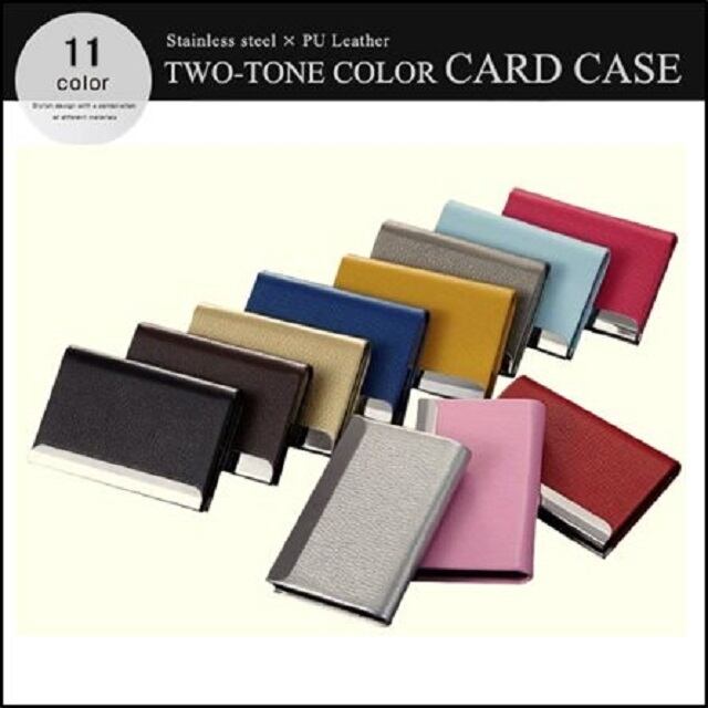 異素材を組み合わせたシンプルでスタイリッシュなカードケースです。レザー調素材とステンレスのコンビネーションが個性的。高級感のある名刺入れです。性別を問わないシンプルさも魅力。