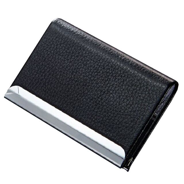 スタイリッシュ 名刺入れ 選べる11色 表面 PU レザー ステンレス おしゃれ カード ホルダー ( ブラック )