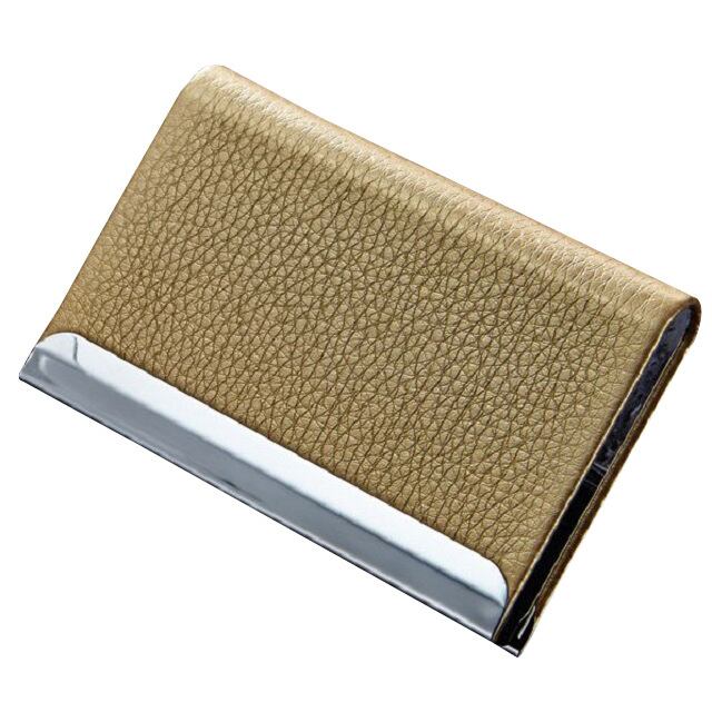 スタイリッシュ 名刺入れ 選べる11色 表面 PU レザー ステンレス おしゃれ カード ホルダー ( ゴールド )
