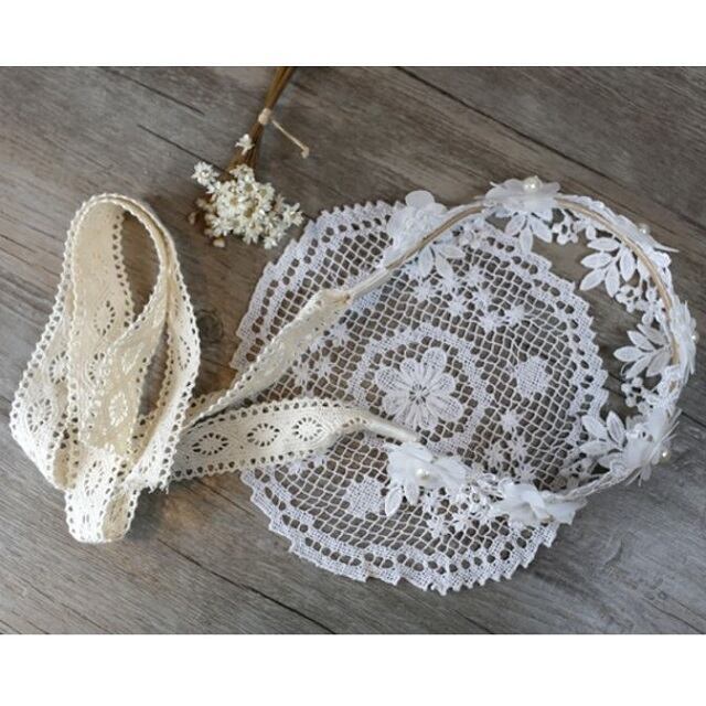 お嬢様風 レース フラワー カチューシャ フラワー 髪飾り 花 ヘアバンド 子供 キッズ ( アイボリー )