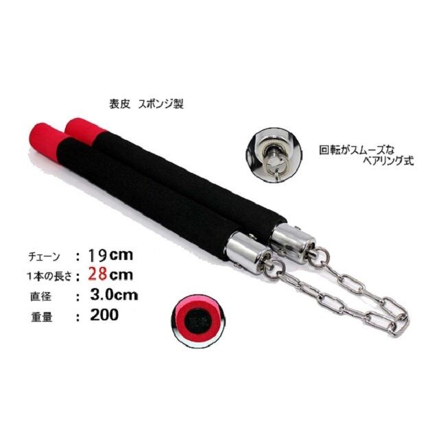 ヌンチャクと言えば、ブルース・リーが映画の中で使用して一躍有名になった武器です。面白いことに中国武術の歴史の中で、ヌンチャクはあまり記述が無く、もともとは沖縄で使用されていた武器と言う説も有ります。本商品は練習用に柄の部分にスポンジを巻いた軽くて扱い易いヌンチャクです。