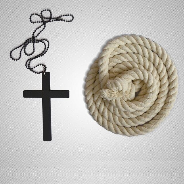 闇の修道士 コスプレ 教会 イベント ハロウィン 衣装 ベルト 十字架 首飾り セット ( ブラック )