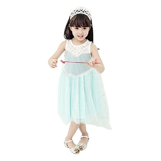 アナと雪の女王 エルサ風 ワンピース 袖なし ドレス コスプレ ハロウィン 子供 キッズ 衣装