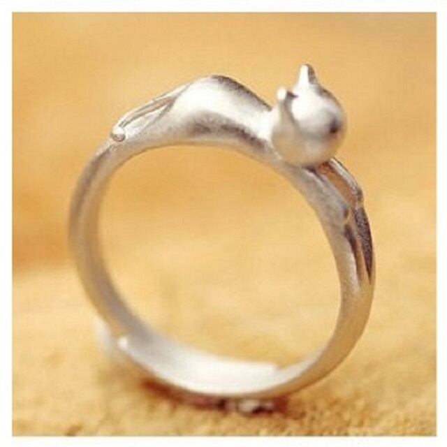 猫好きに キャット ねこ リング 指輪 レディース アクセサリー シルバー フリーサイズ