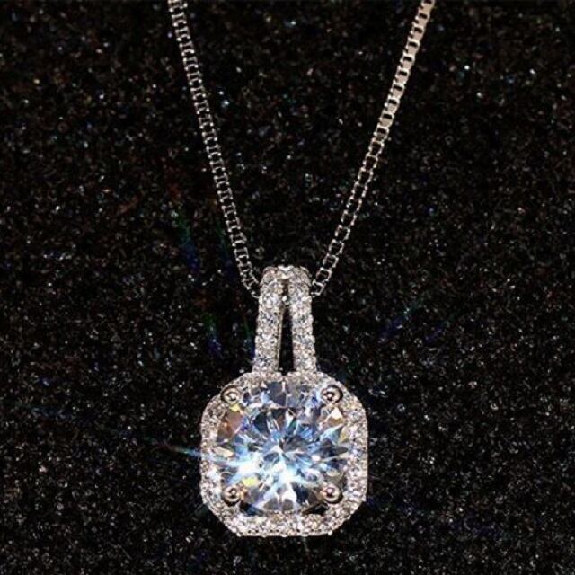 スクエア ジルコニア ペンダント 大粒 レディース ネックレス ワンストーン チェーン 付き