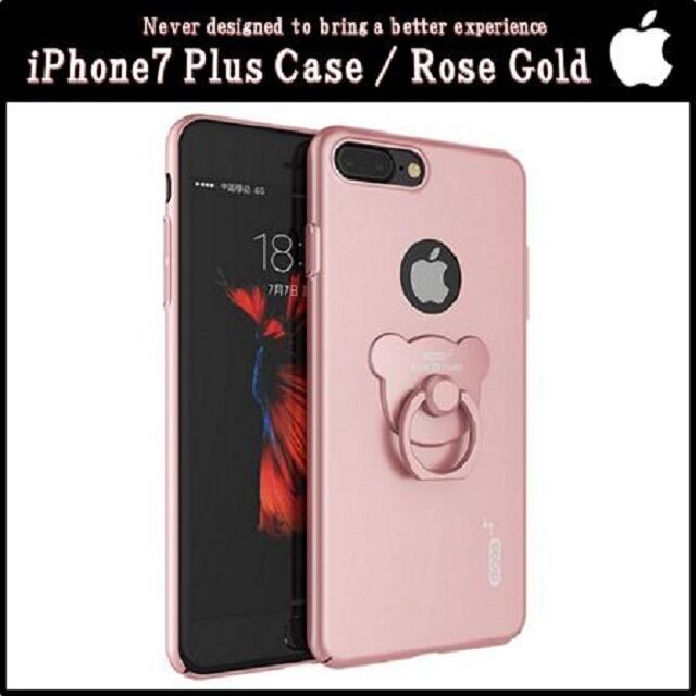 iPhone7 Plus クマ型 リング スタンド 付き スマホ ケース 5.5インチ TPU 落下防止 カバー ( ローズゴールド )