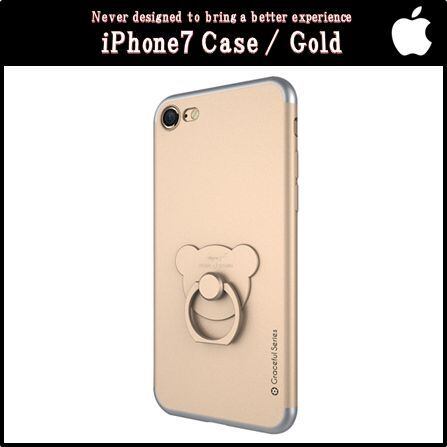 iPhone7 クマ型 リング スタンド 付き スマホ ケース 4.7インチ TPU 落下防止 カバー ( ゴールド )