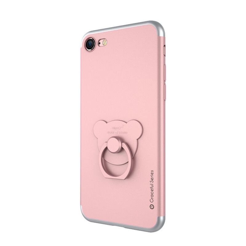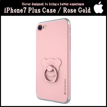iPhone7 Plus クマ型 リング スタンド 付き スマホ ケース 5.5インチ TPU 落下防止 カバー ( ローズゴールド )