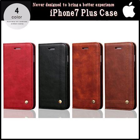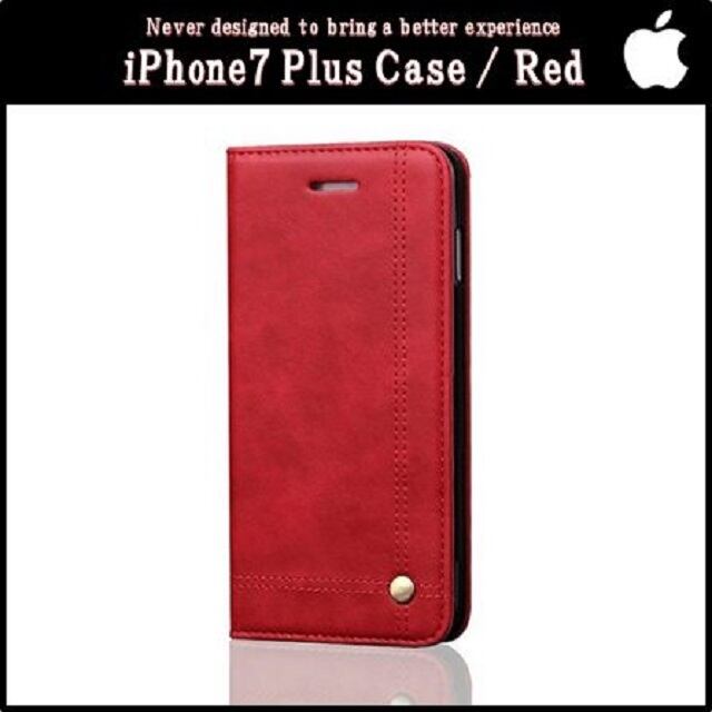 iPhone7 Plus 手帳型 スマホ ケース 5.5インチ おしゃれ PUレザー カバー ( レッド )