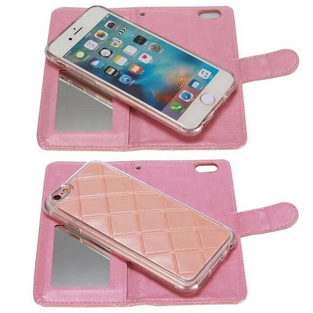 iPhone6/6s 分離型 手帳 スマホ ケース 鏡付き おしゃれ PUレザー カバー (ゴールド)