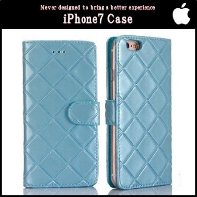iPhone7 分離型 手帳 スマホ ケース 鏡付き おしゃれ PUレザー カバー (ブルー)