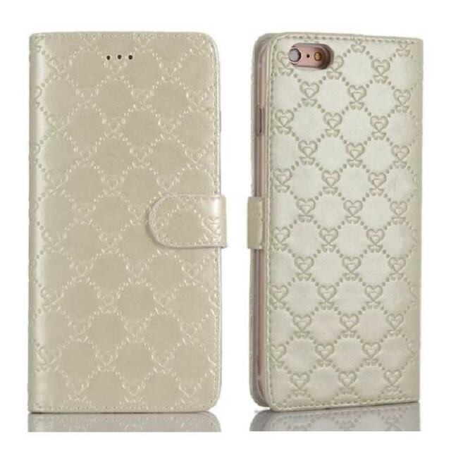 iPhone7 分離型 ハート柄 手帳 スマホ ケース 鏡付き PUレザー カバー (ホワイト)