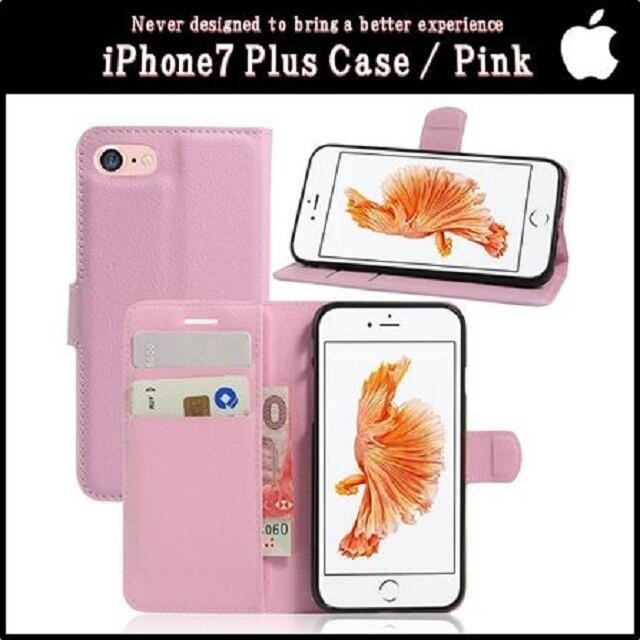 iPhone7 Plus 5.5インチ 手帳型 スマホ ケース 無地 シンプル TPU カバー (ピンク)