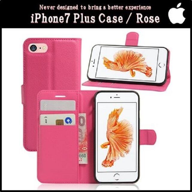 iPhone7 Plus 5.5インチ 手帳型 スマホ ケース 無地 シンプル TPU カバー (ローズ)