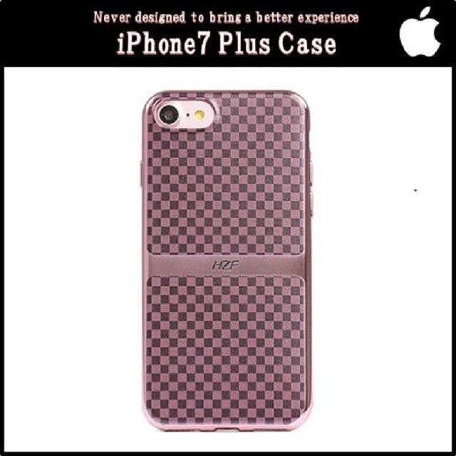 iPhone7 Plus 5.5インチ 市松模様 ソフト スマホ ケース チェック TPU カバー ( ローズゴールド×レッド )