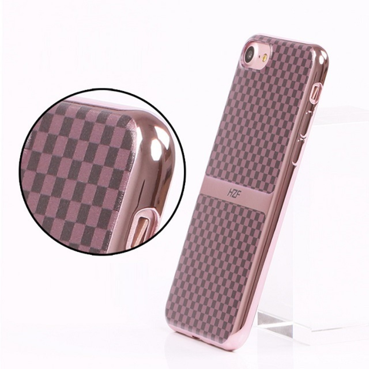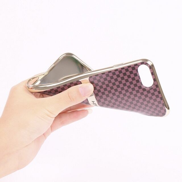 iPhone7 Plus 5.5インチ 市松模様 ソフト スマホ ケース チェック TPU カバー ( ゴールド×ピンク )