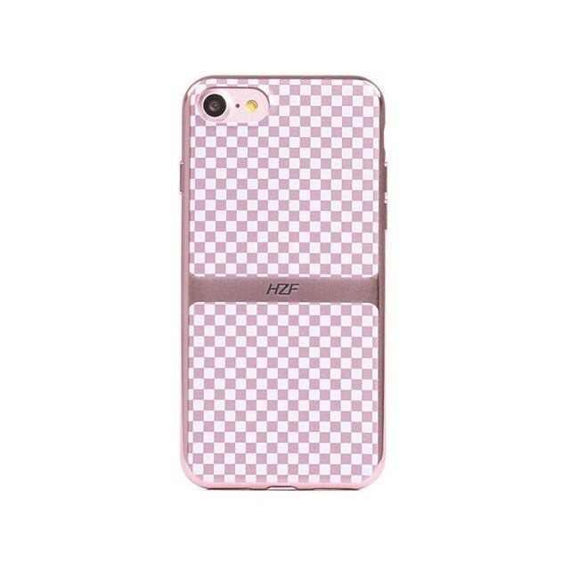 iPhone7 4.7インチ 市松模様 ソフト スマホ ケース チェック TPU カバー ( ローズゴールド×ピンク )