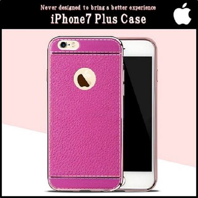 iPhone7 Plus シンプル レザー調 ケース 5.5インチ スマホ カバー TPU素材 耐衝撃 ( ピンク )