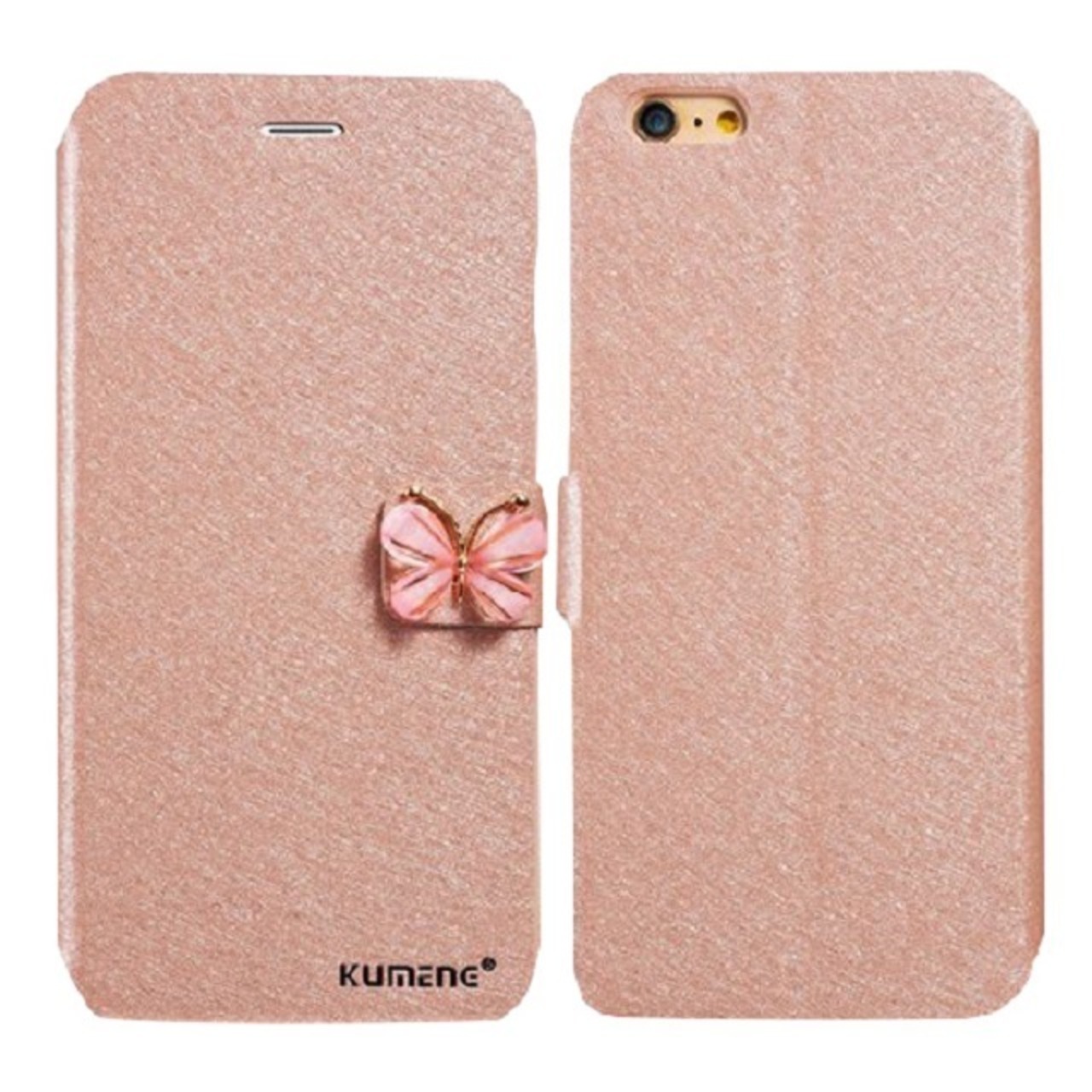 iPhone7 4.7インチ 手帳型 バタフライ モチーフ スマホ ケース PUレザー カバー / シャンパン(蝶々:ピンク)