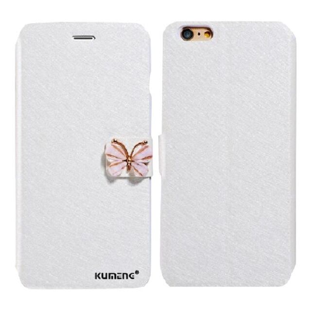 iPhone7 4.7インチ 手帳型 バタフライ モチーフ スマホ ケース PUレザー カバー / ベージュ(蝶々:ホワイト)