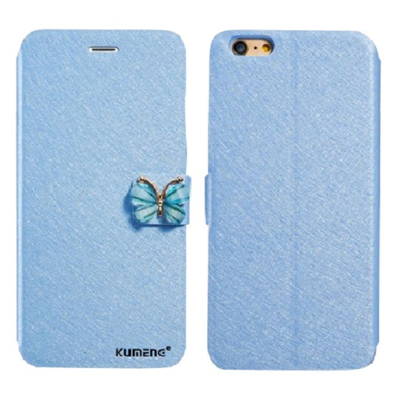 iPhone7 4.7インチ 手帳型 バタフライ モチーフ スマホ ケース PUレザー カバー / ブルー(蝶々:ブルー)