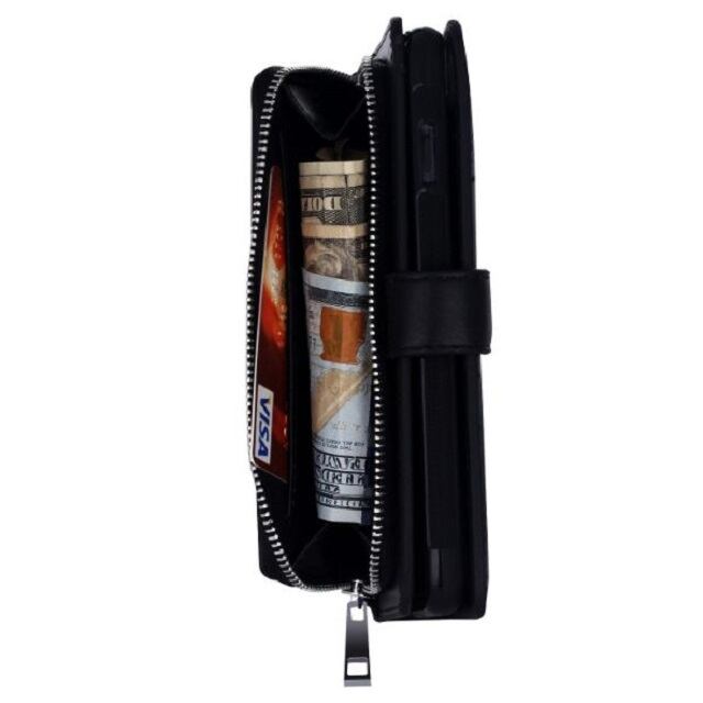 iPhone7 手帳型 スマホ ケース 小銭入れ付き 分離型 PUレザー カバー (ブラック)