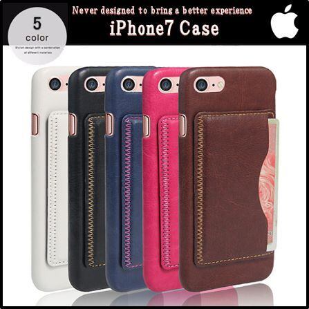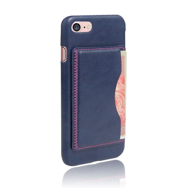 iPhone7 ケース 背面 カード 収納 ポケット おしゃれ PUレザー カバー (ブルー)